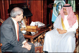 استقبل صاحب السمو الملكي الأمير خالد بن سلطان بن عبدالعزيز مساعد وزير الدفاع والطيران والمفتش العام للشؤون العسكرية بمكتبه في المعذر بالرياض أمس الفريق أول بحري الفرنسي - الاند اودودو دانفيل .