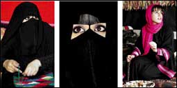 لقطات متعددة رصدها مصور فرانس بريس لسعوديات الأولى تحمل سبحة والثانية تحيك الصوف وفي المنتصف إحدى المتسوقات في معرض سوق الاستثمار والسفر والسياحة بالعاصمة الرياض.