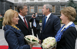 وقال بوش خلال مؤتمر صحافي مشترك مع نظيره الأوكراني فيكتور يوتشينكو في مستهل جولة أوروبية سيشارك خلالها في قمة لحلف شمال الأطلسي وفي مجلس الحلف الأطلسي وروسيا: (إننا ندعم خطة التحرك الهادفة إلى انضمام أوكرانيا وجورجيا).