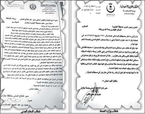 صحة جازان فور نشر خبر (الجزيرة) تحركت سريعاً لتبرئ ساحتها وتعلن أنها لا تعلم أي شيء عن المعلمة (نهى الأشعر) حيث حرر مدير إدارة الإعلام الصحي بصحة جازان جبريل يحيى القبي خطاباً أشار فيه إلى ما نشرته (الجزيرة) وأكد فيه وصول 4 مصابات فقط إلى قسم الطوارئ ولا توجد من ضمن الحالات مصابة تدعى (نهى الأشعر) وهذا ما تؤكده السجلات الطبية والطاقم الطبي والفني بقسم الطوارئ علماً أن المصابات الأربع قد تم نقل إحداهن إلى مستشفى الملك فهد بجازان لحاجتها لاستشاري مخ وأعصاب وبقيت الثلاث حالات بمستشفى صبيا بقسم العناية المركزة.