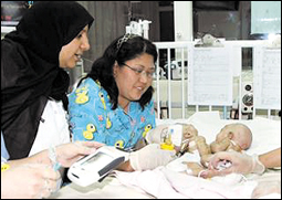 وصل إلى الرياض أمس التوأم السيامي المغربي (صفا ومروة) قادمين من المملكة المغربية الشقيقة بطائرة الإخلاء الطبي وذلك بناء على توجيهات خادم الحرمين الشريفين الملك عبد الله بن عبد العزيز حفظه الله الذي أمر باستضافتهما ووالديهما وإجراء الفحوصات اللازمة لهما وبحث إمكانية إجراء عملية فصل لهما في مدينة الملك عبد العزيز الطبية بالحرس الوطني بالرياض.وعند وصولهم مطار القاعدة الجوية بالرياض كان في استقبالهم مدير عام العلاقات العامة والشؤون الإعلامية بالشؤون الصحية للحرس الوطني سامي بن اورنس الشعلان ثم نقل التوأم بسيارة إسعاف كانت بانتظارهما بالمطار إلى مدينة الملك عبد العزيز الطبية للحرس الوطني بالرياض حيث كان في استقبالهم فريق طبي متخصص قام بإجراء الفحوصات السريرية وطلب الفحوصات الأساسية.وتابع الدكتور بندر القناوي مدير عام الشؤون الطبية بالشؤون الصحية بالحرس الوطني حالة التوأم نيابة عن معالي الدكتور عبدالله الربيعة المدير العام التنفيذي للشؤون الصحية بالحرس الوطني ورئيس الفريق الطبي والجراحي، وسوف يقوم الفريق الطبي خلال الأسابيع القادمة بعقد اجتماع للنظر في حالة التوأم المغربي.وثمن معالي الدكتور عبد الله بن عبد العزيز الربيعة المدير العام التنفيذي للشؤون الصحية بالحرس الوطني ورئيس الفريق الطبي والجراحي في عمليات فصل التوائم السيامية هذه اللفتة الأبوية الحانية من خادم الحرمين الشريفين والتي عمت العالم.