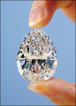 عارضة تحمل 27.22 قيراطا من الألماس تبلغ قيمتها ما بين 10- 13 مليون دولار أمريكي خلال عرضها في هونغ كونغ |