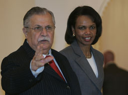 وقال طالباني في تصريحات أذاعها التلفزيون عقب لقائه مع وزيرة الخارجية الأمريكية كوندوليزا رايس: (العقبات الأساسية لعودة جبهة التوافق إلى الحكومة أزيلت. وأضاف أن (الإخوان في التوافق قدموا أسماء مرشحيهم لدولة رئيس الوزراء ليختار من بينها... لكل منصب قدموا اسمين).واستقالت الجبهة من الحكومة التي يقودها رئيس الوزراء نوري المالكي في أغسطس - آب الماضي مطالبةً بالإفراج عن معتقلين معظمهم من العرب السنة، وبأن يكون لها دور أكبر في عملية البت في الشؤون الأمنية. بدورها قالت وزير الخارجية الأمريكية كونداليزا رايس: (لا يزال أماننا الكثير من العمل في مجال المصالحة الوطنية والإعمار لكي يرى الشعب العراقي الإنجازات وما يمكن أن يتحقق له بوجود حكومة وطنية متحدة). وأضافت رايس التي وصلت إلى البحرين مساء أمس قادمة من بغداد: (سأشارك بالبحرين في اجتماعات مجلس التعاون الخليجي، إضافة إلى مصر والأردن والعراق).