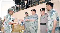 تحت رعاية صاحب السمو الملكي الأمير محمد بن نايف بن عبدالعزيز مساعد وزير الداخلية للشؤون الأمنية رعى مدير المديرية العامة لكلية الملك فهد الأمنية اللواء عبدالرحمن بن عبدالعزيز الفدا وبحضور مساعد مدير عام الكلية للشؤون التعليمية اللواء عبدالكريم الباهلي وقائد قوات أمن المنشآت اللواء ركن سعد الماجد صباح أمس حفل تخريج الدفعة الثانية من طلبة مجندي أمن والدورة التأهيلية الثانية للفرد الأساسي وبدئ الحفل بآيات من كتاب الله الكريم عقبها كلمة قائد مركز التدريب بالكلية العقيد داوود بن سليمان الصبحي ذكر فيها بأن هذا اليوم هو من أيام العطاء في الأمن والإنماء وفي معقل من معاقل الأمن كلية الملك فهد الأمنية وأشار بأن الخريجين أمضوا 28 أسبوعاً نهلوا فيها من العلوم والمعارف الأمنية التي تجعلهم بإذن الله قادرين على قيامهم بواجبهم المنوط بهم بكل ثقة واقتدار.