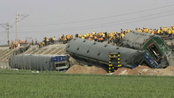 قتل 66 شخصاً على الأقل وأصيب 247 بجروح في حادث اصطدام بين قطارين صباح أمس في شرق الصين هو الأسوأ في هذا البلد منذ أكثر من عقد.. ونقلت وكالة أنباء الصين الجديدة عن السلطات المحلية قولها إن قطاراً سريعاً قادماً من بكين اصطدم بعيد الساعة 4.40 من صباح أمس بقطار آخر للركاب في ضواحي مدينة زيبو في شاندونغ (شرق).. وكان القطار متوجهاً إلى مرفأ كينغداو الذي سينطلق منه سباق المراكب الشراعية في آب - أغسطس في إطار دورة الألعاب الأولمبية.. وكان القطار الآخر يقوم برحلة بين يانتاي وسوزو في إقليم جيانغسو (شرق).. وأفادت السلطات الصينية أن حادث القطار الذي أوقع 66 قتيلاً و247 جريحاً إصابات 51 منهم خطرة، ناجم عن خطأ بشري، مستبعدة فرضية عمل إرهابي بحسب وكالة أنباء الصين الجديدة.. وأوضحت الوكالة أن السلطات (استبعدت أي إمكانية لعمل إرهابي). وحذرت السلطات الصينية في الأشهر الأخيرة من تهديد إرهابي محتمل قبل الألعاب الأولمبية في آب - أغسطس قد يأتي خصوصاً من منطقة سيجيانغ (شمال غرب) التي تضم غالبية مسلمة.. وقالت الوكالة إن 57 شخصاً قتلوا على الفور.. وبعد الحادث تمت إقالة المسؤول المحلي عن السكة الحديد وآخر عن الحزب الشيوعي.. وبين الجرحى، أربعة فرنسيين نقلوا إلى المستشفيات بسبب إصاباتهم بكسور كما ذكرت الوكالة نقلاً عن متحدث باسم مكتب الشؤون الخارجية في شاندونغ (شرق).. لكن المتحدث لم يكشف هوياتهم.. وأضاف المتحدث أن إصابة أحدهم بالغة.. وبحسب وسائل الإعلام الصينية، فإن بين الفرنسيين الأربعة طالبة في الـ23 من العمر في جامعة سينغهوا في بكين ووالدها البالغ الـ54 من العمر.