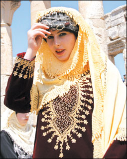 فتاة سورية ترتدي زياً تقليدياً سورياً لتحضر به احتفالاً عاماً أقيم في المدينة السورية حماة.* (رويترز)