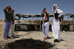 قالت مصادر رسمية إنّ تسعة أشخاص قُتلوا فيما أصيب 28 آخرون أمس، حين انقلبت حافلة تقل سياحاً من كندا وإيطاليا وروسيا وأوكرانيا ورومانيا، واشتعلت بها النيران في شبه جزيرة سيناء.