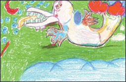 وفي المساء حدثتنا أمي عن طائر عجيب اسمه (صفط) يطير طوال حياته حتى إنه يضع بيضه أثناء طيرانه فلا يصل إلى الأرض سوى القشور، وهو كائن خرافي يعيش فقط في أساطير الجزيرة العربية عندها نظرنا إلى بعضنا البعض وقلنا وهل هذا سبب غضب جدتي عنا هذا الصباح؟.