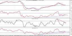 اتجه مؤشر القوة النسبية إيجاباً رغم الانخفاض الذي حصل خلال جلسات الأسبوع، وقد توقف مؤشر القوة النسبية عند مستوى 52 وحدة وهو مستوى غير متضخم بالنسبة لمؤشر القوة النسبية، ويعتقد أن الاتجاه الإيجابي هذا سيزيد من إيجابية السوق في الأيام القادمة وستتضح قوة السوق متى ما استطاع المؤشر اختراق مستوى قمته السابقة والثبات أعلى من الوحدة 56، ولا زالت تحركات هذا المؤشر تجري وفق مساره الصاعد، إلا أنه ينتظر تحرر القوة النسبية من المسار الأفقي الواضح في تحركاته.