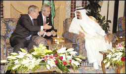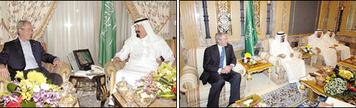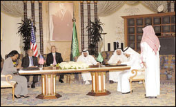 حضر خادم الحرمين الشريفين الملك عبدالله بن عبدالعزيز آل سعود وفخامة الرئيس جورج دبليو بوش رئيس الولايات المتجدة الأمريكية مراسم التوقيع على اتفاق بشأن التعاون التقني بين المملكة العربية السعودية والولايات المتحدة الأمريكية وقعه عن الجانب السعودي صاحب السمو الملكي الأمير نايف ...>>>... |
