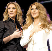 المغنية سيلين ديون تقف إلى جانب مجسم من الشمع لها في متحف للشمع بجريفين في باريس.* رويترز