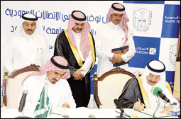 وقع صباح أمس الثلاثاء معالى مدير جامعة الملك سعود الأستاذ الدكتور عبد الله بن عبد الرحمن العثمان ومعالى رئيس مجلس إدارة شركة الاتصالات السعودية المهندس محمد بن سليمان الجاسر عقد تمويل كرسى شركة الاتصالات في مجال الاتصالات والخدمات المتعلقة بها، وحضر التوقيع وكيل الجامعة لشؤون الفروع الأستاذ الدكتور على بن سعيد الغامدى ومدير شركة الاتصالات السعودية المهندس سعود الدويش.