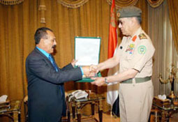 استقبل فخامة الرئيس علي عبدالله صالح رئيس الجمهورية اليمنية في مكتبه بوزارة الدفاع بمدينة صنعاء أمس، معالي رئيس هيئة الأركان العامة الفريق أول الركن صالح بن علي المحيا.