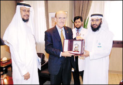 بحث الدكتور عبد الرحمن المزروع المدير العام التنفيذي لمدينة الملك فهد الطبية بالنيابة مع البروفيسور لويس إجنارو الحائز جائزة نوبل في الطب عام 1998م والأستاذ في جامعة كاليفورنيا، خلال زيارته لمدينة الملك فهد الطبية أمس الاثنين، عدداً من القضايا التي تتعلق بالطب والبحث العلمي. واستعرض المزروع تجربة تشغيل مدينة الملك فهد الطبية كأكبر مدينة طبية في الشرق الأوسط ومراحل التوسعة، إضافة إلى طبيعة الخدمات التخصصية المقدمة، وأبرز الخطط والمشاريع المستقبلية.