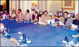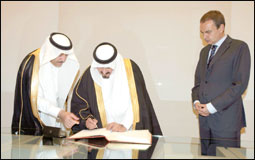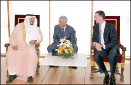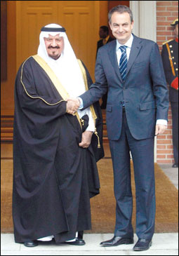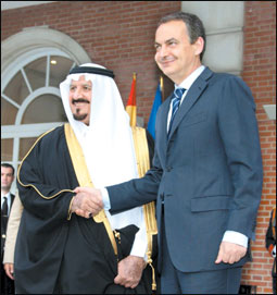 أقام رئيس الوزراء الإسباني السيد خوسيه لويس ثاباتيرو مساء أمس في قصر مونكلوا في العاصمة الإسبانية مدريد حفل عشاء خاص تكريماً لصاحب السمو الملكي الأمير سلطان بن عبدالعزيز ولي العهد نائب رئيس مجلس الوزراء وزير الدفاع والطيران والمفتش العام والوفد المرافق لسموه خلال زيارته لإسبانيا. |