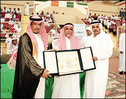 كرم محافظ الزلفي رئيس اللجنة العليا المنظمة لحملة مكافحة التدخين الأستاذ زيد بن محمد آل حسين جريدة الجزيرة الراعي الإعلامي الحصري للحملة بدرع تسلمه نيابة عن سعادة رئيس التحرير الأستاذ خالد المالك الزميل مدير مكتب محافظة الزلفي الأستاذ حمد بن فهد العنقري.