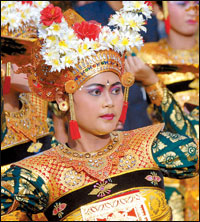 رقصات شعبية أثناء افتتاح الرئيس الإندونيسي لمهرجان فن بالي الثلاثين السنوي في جزيرة بالي. ] ا.ف.ب |
