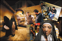 لقطات متعددة للمسلسل السوري (أولاد القمرية) ويصور الحالة الاجتماعية في دمشق في حقبة زمنية قالت (رويترز) إنها في القرن التاسع عشر وتم التصوير في أحد الإستديوهات التي تبعد عن العاصمة جنوباً أكثر من 70 كلم، ويبدو في الصور عباس النوري مع سيف الدين السبيعي (مخرج).. وفي الثانية أمل عرفة تختمر بخمار دمشقي ...>>>... | |