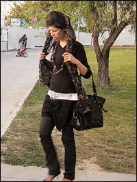 ما إن تعبر نسرين وكيميا مركز الحرس عند مدخل أول متنزه مخصص للنساء في طهران حتى تنزعا حجابهما وتفكا أزرار ردائهما الطويل |