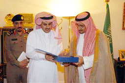 التقى صاحب السمو الملكي الأمير مشعل بن سعود بن عبد العزيز أمير منطقة نجران في مكتب سموه بالامارة مدير شرطة منطقة نجران اللواء حسن بن محمد العسيري الذي اطلع سمو أمير المنطقة على الخطط الأمنية التي تعتزم شرطة منطقة نجران تنفيذها خلال الإجازة الصيفية والعمل أثناء إقامة فعاليات الصيف المختلفة من خلال التنسيق مع اللجان المعنية بالفعاليات ووجه سموه ببذل كافة الجهود لخدمة المواطن والمقيم.كما اطلع سموه وبحضور مدير شرطة المنطقة على رسالة الماجستير المقدمة من الرائد محمد بن سعيد العمري والتي حصل عليها من جامعة الأمير نايف العربية للعلوم الأمنية عن تقويم الاداء في التحريات وهناء سموه الرائد العمري متمنياً له التوفيق.