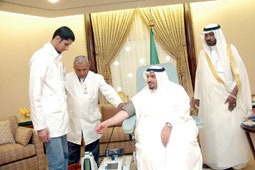 دشن صاحب السمو الملكي الأمير الدكتور فيصل بن مشعل بن سعود بن عبدالعزيز -نائب أمير منطقة القصيم رئيس لجنة أصدقاء بنوك الدم بالمنطقة- ظهر أمس بمكتب سموه بإمارة منطقة القصيم حملة التبرع بالدم بمناسبة اليوم العالمي للتبرع بالدم وذلك بحضور أعضاء اللجنة وعدد من مسؤولي الصحة بمنطقة القصيم. وقام سموه بالتبرع بالدم إيذاناً بقص شريط الحملة الموجهة حيث سيتم عمل حملة مكثفة تشمل العديد من القطاعات الحكومية والخاصة لتغذية بنوك الدم بالمنطقة، ودعا سموه في تصريح صحفي القادرين على التبرع بالدم بالمبادرة لذلك لأنه يساهم بتقديم خدمة إنسانية حثَّ عليها ديننا الحنيف تتمثل في إنقاذ المرضى الذين هم بحاجة لقطرات الدم لعلاجهم مستشهداً بقوله تعالى: {وَمَنْ أَحْيَاهَا فَكَأَنَّمَا أَحْيَا النَّاسَ جَمِيعًا}، وشدد سموه على أهمية احتساب الأجر من الله سبحانه وتعالى مشيراً إلى أن للتبرع بالدم فوائد وانعكاسات صحية إيجابية على المتبرع كما أن الكميات المتبرع بها تعود إلى الإنسان خلال ساعات حسب تأكيد الأطباء. وأشاد سموه بالوعي الذي يشهده المجتمع حيال التبرع بالدم حيث نرى تفاعل المجتمع مع هذا التوجه الجميل الذي يجعل المملكة تحقق اكتفاءً ذاتياً لتغذية بنوك الدم المنتشرة في أنحاء المملكة حتى أن هذا الوعي واستشعار المسؤولية امتد إلى خارج المملكة من قبل مواطني هذه البلاد المباركة حيث تشهد سفارات خادم الحرمين الشريفين تفعيلاً لحملات التبرع بالدم وتغذية مستشفياتنا بالدم النقي للمساهمة في معالجة المرضى وضحايا الحوادث المرورية والأمراض الأخرى وذلك يعود الفضل فيه بعد فضل الله سبحانه وتعالى إلى توجيهات ولاة الأمر واهتمام القائمين على وزارة الصحة الذين نثمن لهم هذه المبادرات وفي مقدمتهم زميلي معالي وزير الصحة الدكتور حمد المانع وجميع منسوبي الوزارة، كما أثنى سموه على تفعيل هذه الحملات من قبل مديرية الشؤون الصحية في منطقة القصيم وأعضاء لجنة أصدقاء التبرع بالدم.