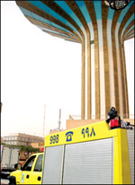 على الصعيد نفسه أوضح الناطق الإعلامي لمديرية الدفاع المدني بالرياض الملازم أول محمد الحبيل إلى أنه وعند صعود عدد من الأعضاء إلى أعلى البرج باستخدام المصعد توقف بهم نتيجة زيادة الحمولة فور صعودهم مما اضطرهم إلى الاتصال بعمليات الدفاع المدني مستخدمين إشارة أحد مشغلي الهاتف المحمول الذي تم التقاط إشارته من داخل المصعد وحسب ما ذكره العضوان ناصر الزياد ومحمد القريوي بأن المصعد نزل بهم بعد ذلك بسرعة تشبه البرق ولكن إيمانهم بالله ومن ثم اطمئنانهم بوجود كوادر قادرة على التعامل مع مثل هذا الوضع هو ما أعطاهم الاطمئنان خلال مدة احتجازهم داخل الكبينة. وقدم الأعضاء عبر (الجزيرة) شكرهم وتقديرهم لرجال الدفاع المدني الذين بذلوا جهداً مضنياً متميزاً لإنقاذهم.