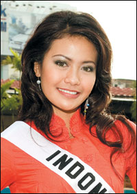 ملكة جمال إندونيسيا بيتري راماوستي بعد وصولها إلى فندق العالم الجديد بمدينة هو تشي الفيتنامية تجهيزاً لدخولها منافسات الدورة السنوية السابعة والخمسين لملكات جمال المدن الساحلية «أ.ف.ب» |