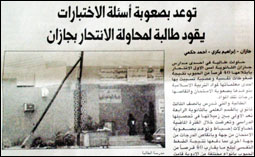 كشفت التحقيقات الأخيرة التي أجرتها إدارة تعليم البنات بجازان براءة معلمة التربية الإسلامية بالمدرسة الثانوية الرابعة بجازان والمتهمة بالتسبب في محاولة انتحار إحدى طالباتها بعد توعدها بصعوبة الاختبار والذي نشرت (الجزيرة) خبرها يوم الأحد الموافق 8-6- 2008هـ في عددها ...>>>... | |