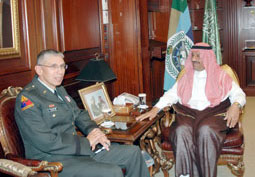 من جهة أخرى استقبل سمو مساعد وزير الدفاع والطيران والمفتش العام للشؤون العسكرية في مكتبه بالمعذر أمس رئيس بعثة التدريب العسكرية الأمريكية بالمملكة اللواء ريت هيرنانديز.