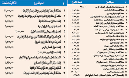 كما يجري الآن دراسة وتنفيذ العديد من المشاريع التطويرية بالمحافظة حسب البيان التالي: