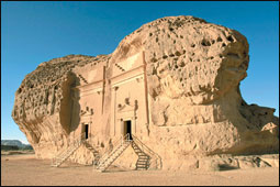 صورة لمدائن صالح بثتها (أ ف ب) أمس تزامناً مع اختيارها ضمن قائمة التراث العالمي |