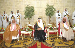 استقبل صاحب السمو الملكي الأمير خالد الفيصل بن عبدالعزيز مساء أمس مفتي عام المملكة ورئيس هيئة كبار العلماء فضيلة الشيخ عبداالعزيز بن عبدالله آل الشيخ وعدداً من أصحاب الفضيلة العلماء في هيئة كبار العلماء ومجلس القضاء الأعلى والمحاكم الشرعية، كما استقبل سموه بفندق الانتركونتننتال رؤساء الإدارات والمصالح الحكومية وعدداً من المسئولين من مدنيين وعسكريين الذين تشرفوا بالسلام على سموه وتناولوا طعام العشاء على مائدة سموه وقد حضر هذه الاستقبالات صاحب السمو الملكي الأمير عبدالعزيز بن سطام بن عبدالعزيز وسمو الأمير خالد بن سعود بن جلوي ومعالي محافظ الطائف فهد بن عبدالعزيز بن معمر.