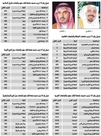 دخلت جامعة الملك سعود في مجموعة أفضل أربعمائة جامعة عالمية بتحقيقها المرتبة 380 حسب تصنيف ويبو ماتريكس الإسباني العالمي الشهير. هذا وقد حققت جامعة الملك سعود المركز الأول على مستوى العالم العربي والعالم الإسلامي، كما حققت المركز الأول على مستوى الشرق الأوسط وإفريقيا، كما حققت المرتبة 28 على مستوى آسيا. وتلخص الجداول الخمسة الآتية ترتيب جامعة الملك سعود عالمياً وعربياً وإسلامياً وشرق أوسطياً وشرق أوسطياً وإفريقياً.