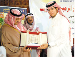 كرم سمو الأمير عبدالله بن فيصل بن تركي محافظ الهيئة العامة للاستثمار السابق المخرج والإعلامي محمد آل عبدالكريم بمناسبة جهوده الإعلامية في مجال الإنتاج الإعلامي وبمناسبة إخراجه لفيلم وثائقي لمركز الرميزان للتدريب والذي يحكي قصة التدريب في مجال مبيعات الذهب والمجوهرات والدور الوطني الذي يقدمه المركز في ...>>>... | |