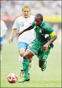 قاد فيكتور أوبينا مهاجم كييفو الإيطالي منتخب نيجيريا للفوز على نظيره الياباني 2 - 1 افي تيانجيان في الجولة الثانية من منافسات المجموعة الثانية في مسابقة كرة القدم ضمن أولمبياد بكين 2008م.