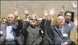 عدد من الأدباء والمثقفين يتقدمهم الفنان مارسيل خليفة في وداع درويش. |