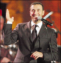 الفنان العراقي كاظم الساهر يغني على المسرح الروماني في ليلة أحياها ضمن ليالي مهرجان قرطاج الرابع والأربعين في تونس.* أ. ف. ب |