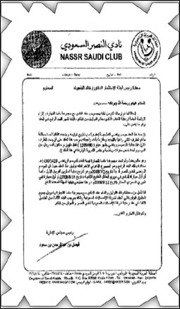 أرسلت إدارة النصر متمثلة بالأمير فيصل بن عبد الرحمن أمس السبت خطاباً عاجلاً لرئيس لجنة الاستثمار باتحاد القدم الدكتور خالد الباحوث مطالباً بفك التوثيق وإلغاء عقد النادي مع مجموعة ماسا للتجارة وتحويل جميع الحقوق الواردة لشركة الاتصالات السعودية مستندين على البند الثالث من الملحق الثالث في عقد رعاية الاتصالات والنصر والموثق من قبل لجنة الاستثمار وذلك لعدم تسديد مجموعة ماسا قيمة العقد للموسم الرياضي 1429هـ و1430هـ ويعد مخالفة بذلك البند الرابع وهو المصوغ القانوني الآخر لفك توثيق العقد حيث عللت إدارة النصر بأن آخر مهلة لدفع العقد الحالي والبالغ مليوناً ومائتي ريال تنتهي مع أول مباراة في الموسم وهي مباراة البارحة أمام القادسية الكويتي في تصفيات المجموعة الثانية للبطولة الخليجية 24 والتي يستضيفها نادي الخور القطري.