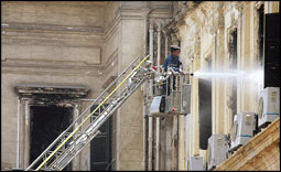 من جانبها شددت أجهزة الأمن على ضرورة منع الموظفين الذين توافدوا إلى المجلس من دخول المبنى المحترق خوفاً من حدوث انهيارات مفاجئة بسبب تآكل الأسقف الخشبية والمياه الكثيرة التي تم اخماد الحريق بها.
