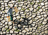 قروي إندونيسي يحمل إناءين لتعبئتهما بالمياه في إقليم جاوا الإندونيسي الذي يعاني من الجفاف....>>>... |