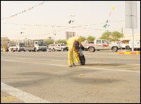 وتعتبر هذه العملية من مهام النظافة وبشكل يومي ما جعلها تسهم في نظافة مواقع البيع من حبات التمر المتساقطة خشية من تعرضها لدهس الأقدام.