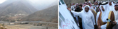 واطلع سموه أثناء تفقده المشروع على المخططات التفصيلية للمشروع التي تبين مراحل وسير العمل وما تم تنفيذه من أعمال في المشروع والذي بلغت تكلفته (330) مليون ريال بطول (32) كلم، ويحوي تسعة جسور إسمنتية و(170) عبارة تصريف سيول ونفقين بطول (550) متراً طولي. وبيّن مدير عام إدارة الطرق والنقل بمنطقة عسير أن المشروع قطع شوطا كبيرا، حيث تنتهي أعمال المشروع كاملا مع نهاية شهر ذي الحجة لهذا العام 1429هـ، وقد تم إنجاز المشروع بنسبة (71.79 %) وكان العقد المبرم مع المقاول للتنفيذ في (48) شهراً.. فيما تبقى ما نسبته (26.21 %) لاكتمال المشروع..