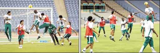 من جهة أخرى تصل ظهر اليوم بعثة منتخب قطر الى الرياض حيث سيجري العنابي تدريبه على أرض استاد الملك فهد مساء اليوم في حين سيقتصر تدريب الاخضر على مناورة خفيفة على أرض ملعب الأمير فيصل بن فهد.