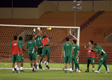 أنهى منتخبنا الأول تدريبه مساء أمس استعدادا للمباراة الودية التي ستجمعه اليوم بنظيره القطري باستاد الملك فهد الدولي، واشتمل تدريب الأمس الذي غادره الخماسي المبعد على بعض التكتيكات التي فرضها الوطني الجوهر على اللاعبين ومن خلال التدريب والمناورة التي ركز فيها الجوهر على اللاعبين الذين سيدخل بهم لقاء الليلة وهم: وليد العبدالله في حراسة المرمى وأمامه خط رباعي مكون من شهيل وتكر واسامة هوساوي والزروي وفي الوسط خالد عزيز وأحمد عطيف ومحمد الشلهوب وعبده عطيف وأمامهم خط الهجوم المكون من ياسر القحطاني وفيصل السلطان.