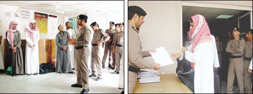 إنفاذاً لتوجيهات خادم الحرمين الشريفين الملك عبدالله بن عبدالعزيز - حفظه الله - بإطلاق سراح السجناء أطلقت إدارة سجون منطقة تبوك ظهر أمس الأحد الدفعة الأولى من الذين شملتهم التوجيهات السامية الكريمة بإطلاق سراحهم وذلك بمتابعة مدير إدارة سجون منطقة تبوك العميد سعد بن نوار الثبيتي وحضور مدير شعبة سجن تبوك العقيد رباح تابع الشراري والرائد أحمد حمد المطيويع والملازم أول محمد حمود البلوي حيث قام العقيد رباح الشراري بإلقاء كلمة توجيهية في المفرج عنهم حثهم فيها على تقوى الله والاستفادة من هذه المكرمة الملكية ونسيان الماضي وفتح صفحة جديدة في حياتهم ليكونوا صالحين وأكد لهم أن السجن هو تهذيب للشخص وفرصة لمراجعة حساباته ودعاهم لاغتنام هذه الأيام المباركة في الطاعة متمنياً لهم التوفيق وعدم العودة للذنوب وقدم لهم هدايا عبارة عن كتيبات ومصحف لكل سجين. وقد عبر السجناء المفرج عنهم عن شكرهم وعرفانهم لخادم الحرمين الشريفين - حفظه الله - على هذه المكرمة داعين الله أن يجعل ذلك في موازين حسناتهم.
