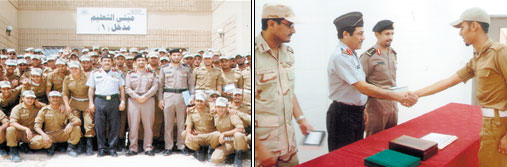 احتفل مركز تدريب الحرس الوطني صباح أمس بتخريج دورة أمن وحماية المنشآت (التخصص رقم1-1429هـ) من قوات أمن المنشآت بالأمن العام، وذلك بحضور قائد مركز تدريب الحرس الوطني بالرياض العميد الركن علي بن محمد التميمي ومدير إدارة التدريب العام بقوة أمن المنشآت بالأمن العام العقيد سيف بن معيض القحطاني.