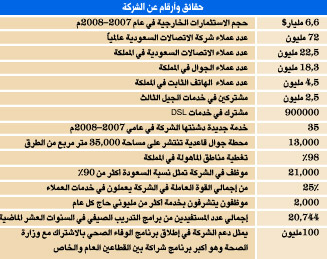 تعتبر شركة الاتصالات السعودية شركة مساهمة عامة مدرجة في سوق الأسهم، المزود الوطني الأول لخدمات الاتصالات بالمملكة والأكبر على مستوى الشرق الأوسط، حيث يقوم أكثر من 21.000 من القوى العاملة، يشكل السعوديون أكثر من 90% منهم على خدمة أكثر من 18 مليون عميل للجوال و4.5 مليون عميل للهاتف تدعمهم في تقديم خدمتهم لعملائهم أكبر شبكة وبنية تحتية لخدمات الاتصالات المتنقلة على مستوى الشرق الأوسط. تشتمل على أكثر من 13.000 محطة للجوال تنتشر على مساحة 35.000 متر مربع من الطرق لتغطي أكثر من 98% من المناطق المأهولة بالسكان.
