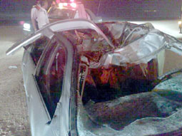 وحدثت تلفيات كبيرة في السيارة فيما نجا قائد مركبة أخرى من نوع هايلكس موديل 98 كان يسير خلف السيارة الكامري مباشرة واصطدم ببعض الجمال بعد وقوعها على الطرق السريع وحدثت تلفيات بسيطة في مركبته وباشرت فرق القوات الخاصة لأمن الطرق الحادث والدفاع المدني والهلال الأحمر.