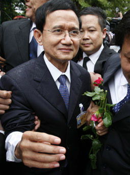 انتخب البرلمان التايلاندي أمس الأربعاء سومشاي وانغساوات صهر رئيس الوزراء المخلوع تاكسين شيناواترا رئيساً للوزراء حيث حصل سومشاي على دعم غالبية من النواب ليتولى رئاسة الحكومة. وقال رئيس البرلمان شاي شيدشوب إن 298 عضوا في البرلمان من إجمالي 480 صوتوا لصالح وانغساوات فيما صوت 163 عضواً لصالح زعيم المعارضة ابهيسيت فيجاجيفا وامتنع خمسة أعضاء عن التصويت وغاب الباقون عن الجلسة . وقال وانغساوات أشكركم على وضع ثقتكم في لأصبح رئيسا للوزراء.. أعدكم بالقيام بواجبي على أكمل وجه ممكن.وسومشاي(61 عاماً) متزوج من الأخت الصغرى لتاكسين. وعلى الرغم من صلته الوثيقة بتاكسين.. اعتبر وسومشاي سياسياً توافقيا وكان المرشح الأكثر ملاءمة من بين المرشحين المنتمين لحزب سلطة الشعب لتولي رئاسة الوزراء بسلاسة بهدف الخروج من الأزمة السياسية الحالية في البلاد التي بدأت في 26 آب - أغسطس الماضي عندما استولى الآلاف من معارضي الحكومة على المقار التابعة لها مطالبين باستقالة رئيس الوزراء السابق ساماك سوندرافيج.