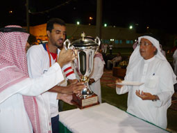 بحضور معالي وزير المياه والكهرباء المهندس عبدالله بن عبدالرحمن الحصين ومدير عام الموظفين المهندس عبدالله محمد العبودي وحضور جماهيري كبير اختتمت يوم الخميس الماضي البطولة الرياضية الرمضانية الحادية عشرة والتي تنظمها المديرية العامة للمياه بالرياض على ملاعب نادي الموظفين بحي الدريهمية والتي انطلقت يوم الأربعاء 3-9-1429هـ، حيث حقق فريق الخرج كأس البطولة لكرة القدم بعد فوزه على فريق الصرف بهدف مقابل لا شيء، وسلم معالي الوزير الجوائز للفرق الفائزة في جميع الألعاب كرة القدم وكرة الطائرة والتنس والبلياردو وكذلك كرم معالي الوزير جريدة الجزيرة على تغطيتها الفعالة لمنافسات البطولة.